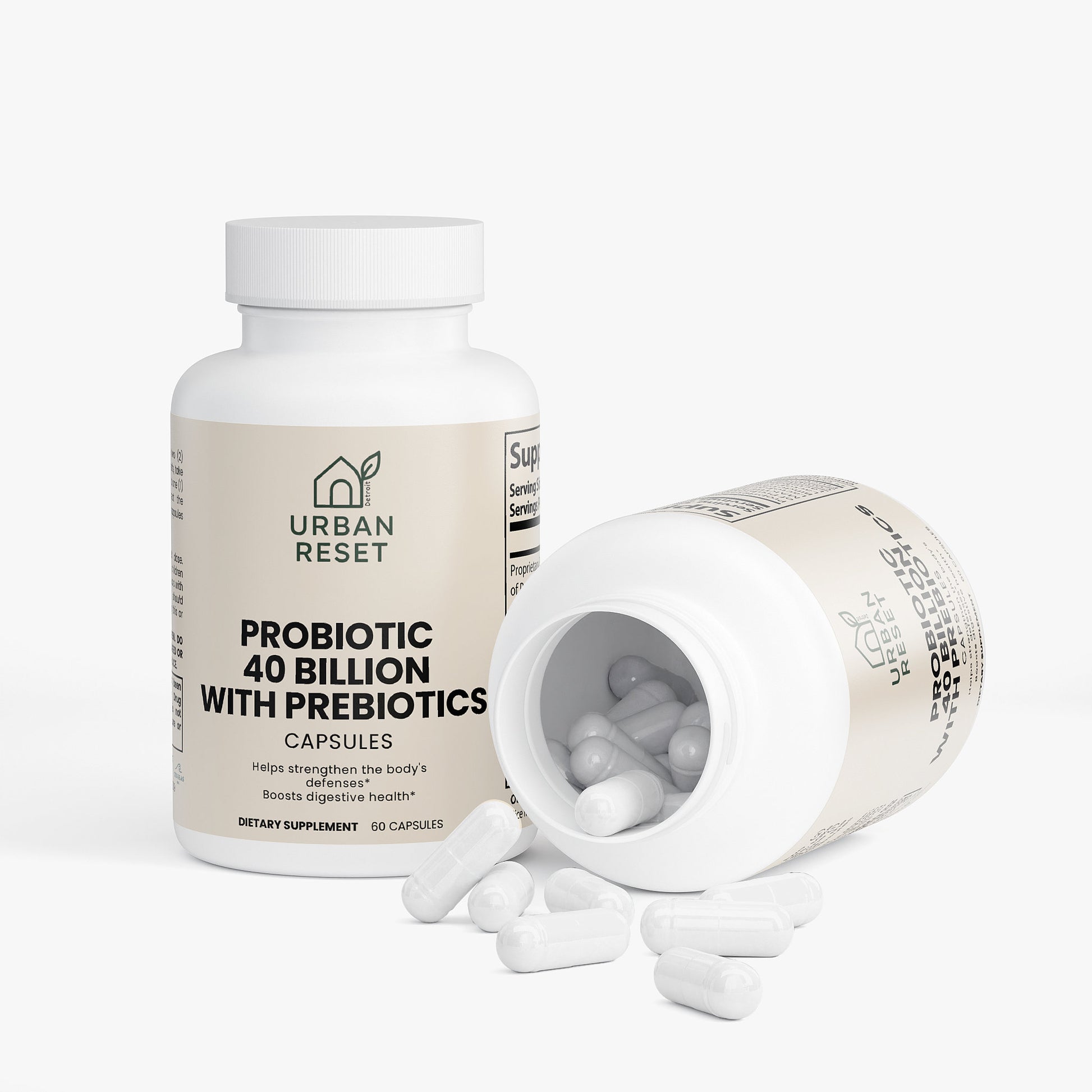 Probiotic 40 Billion with Prebiotics is a blend of four probiotic strains: Lactobacillus Acidophilus, Bifidobacterium Lactis, Lactobacillus Plantarum, and Lactobacillus Paracasei.